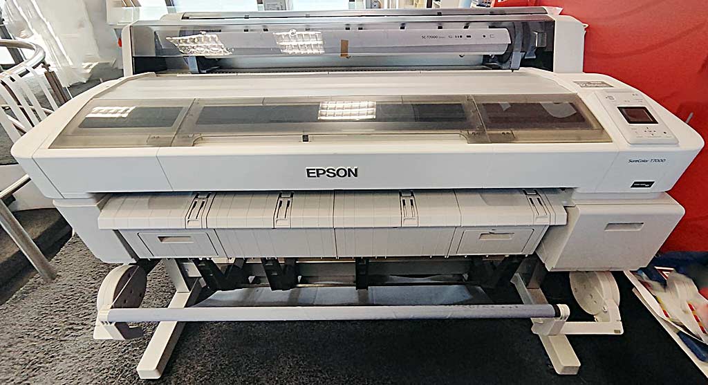 Epson 提供两种相同的大幅面喷墨打印机。打印分辨率:2880 dpi/1440dpi,墨水技术:爱普生UltraChrome,打印方法:爱 普生微型压电,喷嘴配置:每种颜色720个喷嘴。颜色 品红色/黄色/青色/哑光黑/照片黑,最大纸张尺寸:D IN A0/卷筒尺寸 44 英寸,纸张厚度:0.08 毫米-1.5 毫米。机器尺寸 X/Y/Z:约 1650mm/850mm/1150mm,重量:约 100kg。可用的文档。可以进行现场检查