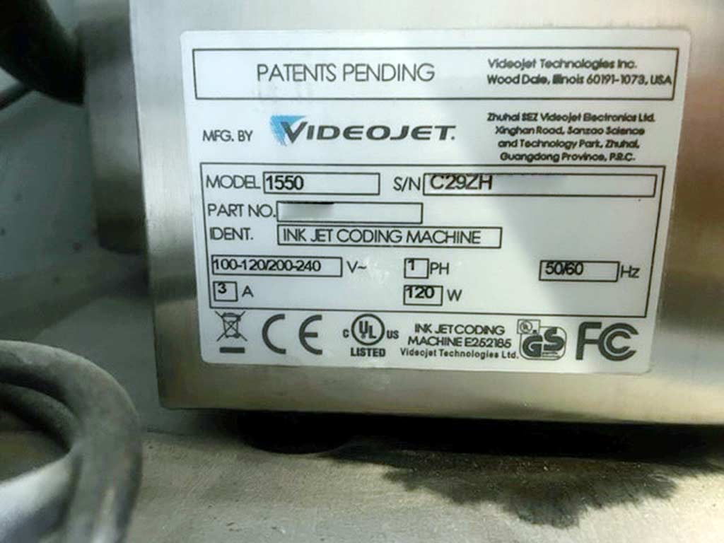 有两台相同的 Videojet 1550 可供选择,长度:382 毫米,宽度:361 毫米,高度:553 毫米,重量:22 公斤,有大量文档,可以进行现场检查