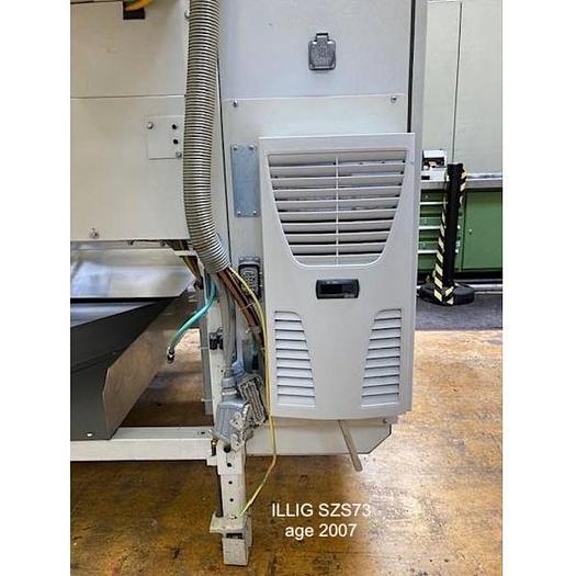 2007 年时代,包括 :-, 西门子 S7 PLC 控制器 Indramat 伺服电机 西门子 SINAMICS 电机驱动 威图控制柜 带温度显示的冷却装置 带卡扣堆叠 刷子堆叠 级联堆叠 计数器/堆垛机生产良好, 该 ILLIG SZS73 与第 3 代 ILLIG RDM70K 系列内联工作,有效工作区域:740 x 340 毫米, 最大部件高度: 150 mm, 成型件堆叠长度: 800 mm